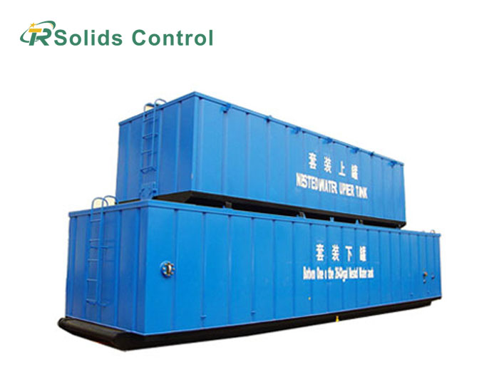 TR Solids Control's water tank sets consist of a top tank and a bottom tank, with the top tank being smaller and the bottom tank being larger. During operation, the top tank is mounted on the bottom tank via a flip hook, providing pressured water to the workplace. The bottom tank serves as a reserve water tank and is equipped with a water pump to supply water to the top tank at all times. During transport, the water tank is emptied, the top tank's flip hook is retracted, and the tank can be placed inside the bottom tank for easy transport.