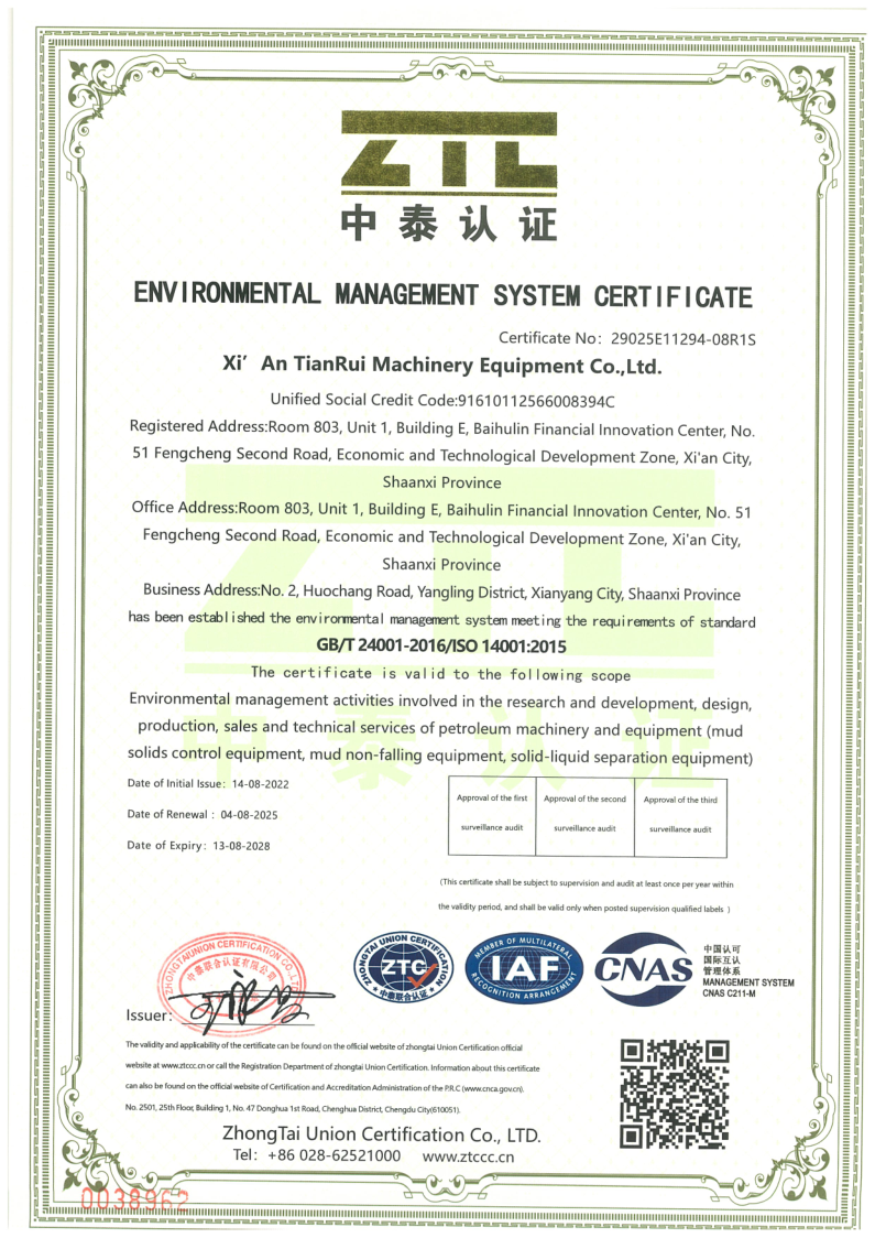 • ENVIRONMENTAL MANAGEMENT SYSTEM CERTIFICATE
